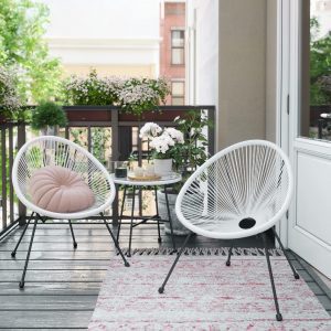 Con su aspecto aireado y líneas simples, este conjunto no solo es agradable a la vista, sino que también se integra fácilmente con otros muebles. Su elegancia sencilla lo convierte en una pieza destacada tanto en interiores como en exteriores, ideal para ver la puesta de sol, acurrucarte en un rincón soleado o disfrutar de un cóctel en el balcón.