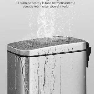Perfecto para Baño: Fabricado en acero resistente al óxido con una tapa hermética, este cubo es resistente al agua, asegurando que el interior permanezca seco y protegido en entornos húmedos como los baños.
