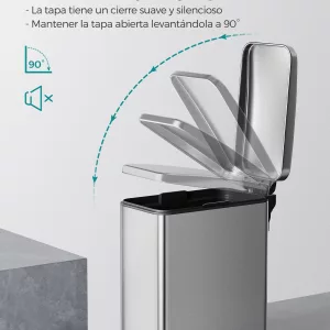 Cierre Suave y Permanece Abierta: La tapa se cierra de forma suave y silenciosa, eliminando ruidos molestos. Además, puede mantenerse abierta para facilitar la eliminación de residuos durante limpiezas prolongadas.