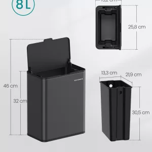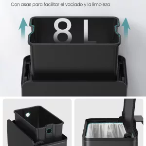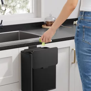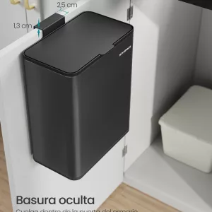 Cubo de basura colgante 8 l con tapa negro tinta