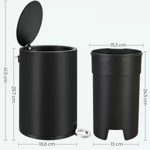 Material: Cubo Exterior de Acero, Tapa de Plástico ABS, Cubo Interior de Plástico PP
