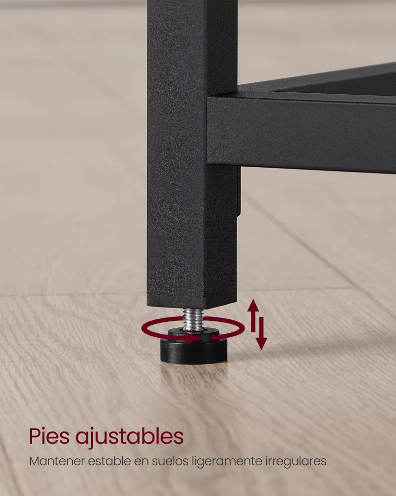 Con puntales de acero estratégicamente ubicados bajo la superficie, este escritorio garantiza una estabilidad excepcional. Soporta hasta 50 kg, permitiéndote organizar tu laptop, archivos y libros sin esfuerzo.
