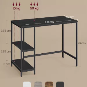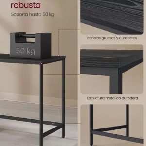 Gran Espacio de Mesa: Con una superficie de mesa de 50 x 100 cm, este escritorio es lo suficientemente espacioso como para acomodar 2 monitores de ordenador, un teclado y otros elementos esenciales de oficina. Ofrece un espacio de trabajo amplio que te permite ser más productivo en tus tareas diarias, ya sea en el teletrabajo o en el estudio.