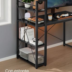 Escritorio con Estante de Fijación Flexible: Máximo Espacio y Versatilidad para Tu Área de Trabajo