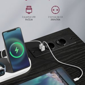 Conectividad Completa: Equipado con 2 tomas de CA y 2 puertos USB, además de un cable de alimentación de 2 m, mantiene todos tus dispositivos cargados y listos para usar, desde el teléfono hasta el portátil.