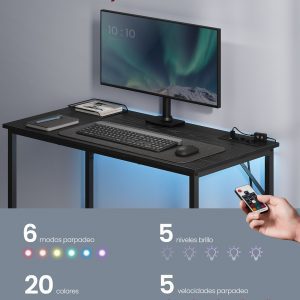 Con su combinación única de diseño ergonómico, iluminación ambiental y conectividad integrada, este escritorio es el aliado perfecto para cualquier tarea o maratón de juegos, proporcionando el entorno perfecto para la productividad y el entretenimiento.
