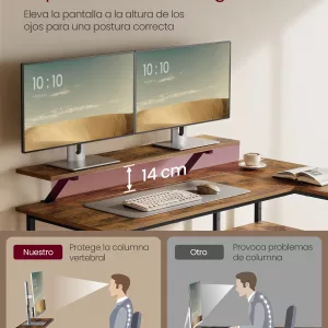 Estable y Robusto: Construido con una estructura de acero resistente y travesaños reforzados, este escritorio puede soportar hasta 50 kg en el tablero y 20 kg en el soporte del monitor. Esto te permite trabajar con confianza, sabiendo que tu equipo y documentos están seguros.