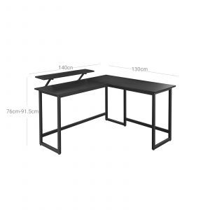 Eleva tu experiencia de trabajo o juego con nuestro escritorio en forma de L, diseñado meticulosamente para adaptarse a cualquier rincón de tu hogar u oficina, maximizando el espacio sin comprometer el estilo. Este escritorio, con su elegante acabado negro, no es solo una pieza de mobiliario, sino un centro de productividad.