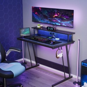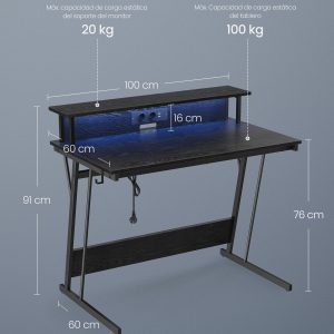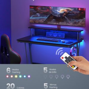 Ambiente Futurista con Luces LED: El escritorio viene con una tira de luces LED que ofrece 20 colores diferentes, 6 modos de flash, 5 niveles de brillo y 5 velocidades de parpadeo, creando un ambiente inmersivo y futurista para tus sesiones de juego.