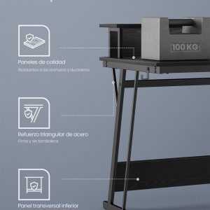 Montaje Fácil y Rápido: Gracias a su diseño sencillo, piezas marcadas e instrucciones claras, este escritorio para juegos es muy fácil de montar. Podrás empezar a disfrutar de tus juegos de ordenador favoritos en poco tiempo.