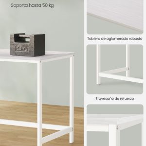 Construcción Robusta y Duradera: Hecho de aglomerado de alta calidad y con una estructura de acero, este escritorio está diseñado para ser tanto estable como duradero, capaz de soportar las demandas de trabajo, estudio o recreación.