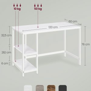 Amplio Espacio de Trabajo: La superficie de 60 x 120 cm es suficientemente espaciosa para acomodar 2 monitores de ordenador, un teclado y otros esenciales de oficina, proporcionando el espacio necesario para maximizar tu productividad en el teletrabajo.