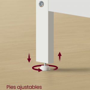 Pies Ajustables Prácticos: Los pies ajustables aseguran que el escritorio se mantenga estable en superficies ligeramente irregulares y protegen tu suelo de posibles arañazos, eliminando las distracciones de un escritorio que se tambalea.