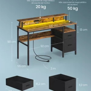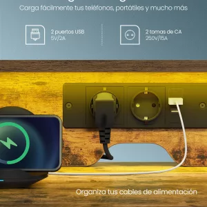 Aumenta tu Eficiencia: Equipado con 2 tomas de CA y 2 puertos USB, facilitando la carga de dispositivos electrónicos. El soporte del monitor eleva la pantalla para mejorar la postura y reducir la tensión en el cuello.