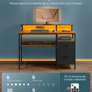 Transforma tu habitación y sumérgete en una experiencia única con el Escritorio Gaming. Equipado con iluminación LED integrada, ofrece 20 colores, 6 modos de parpadeo, 5 niveles de brillo y 5 velocidades de parpadeo para que personalices el ambiente según tu estado de ánimo. Ya sea para estudiar, trabajar o jugar, este escritorio es la combinación perfecta de funcionalidad y estilo.