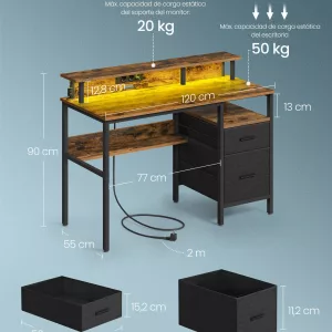 Construcción Sólida: La estructura de acero y los travesaños reforzados permiten que el escritorio soporte hasta 50 kg en la mesa y 20 kg en el soporte del monitor.