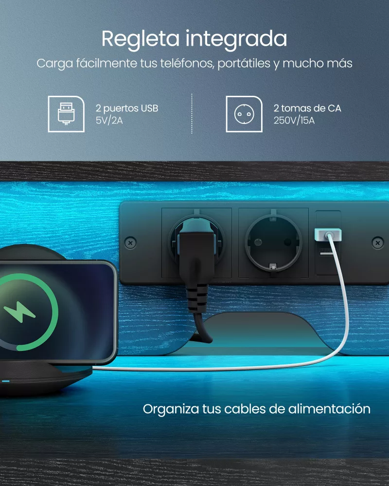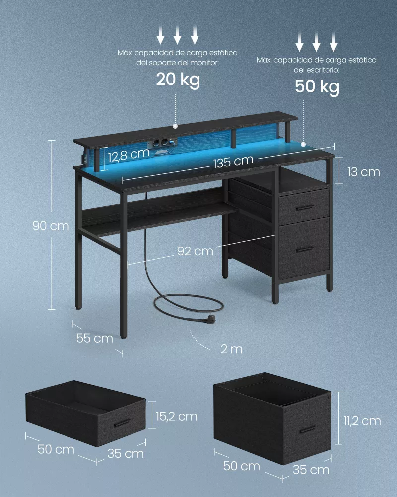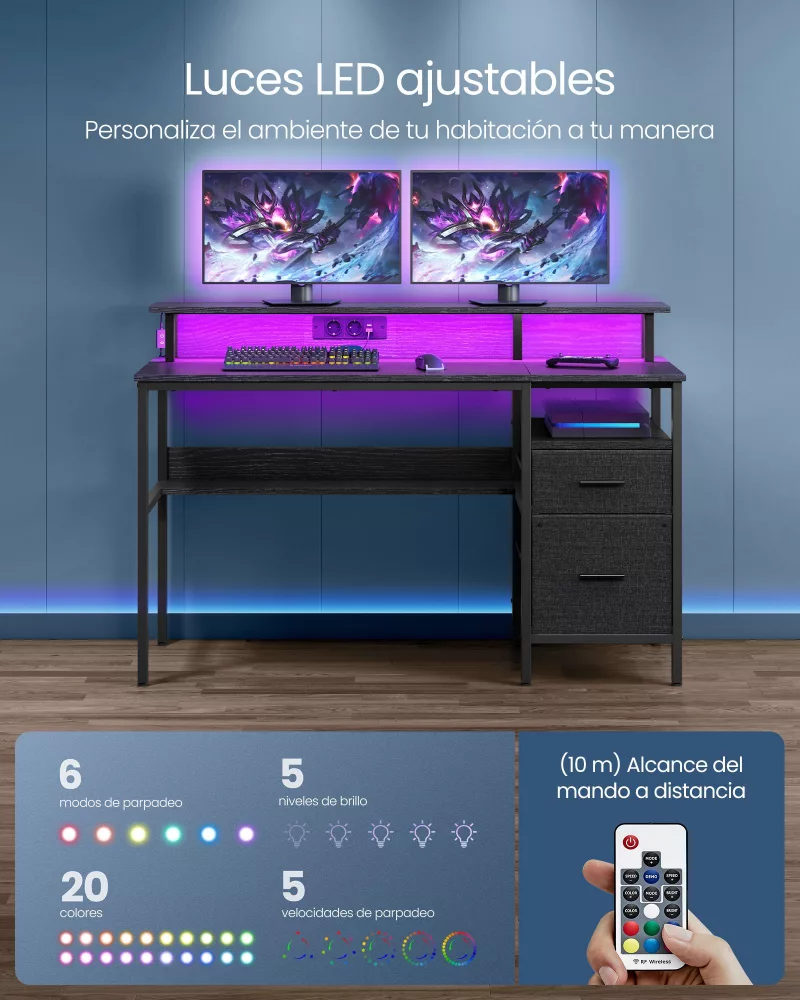 Escritorio para Juegos con Luces LED Negro Ébano