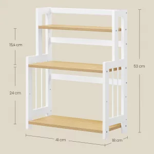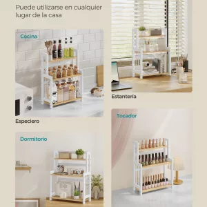 La funcionalidad de esta estantería trasciende la cocina. Úsala en el escritorio para organizar materiales de oficina, en el baño para artículos de aseo y maquillaje, o en el salón para exhibir tazas coleccionables y más. Las posibilidades son infinitas.