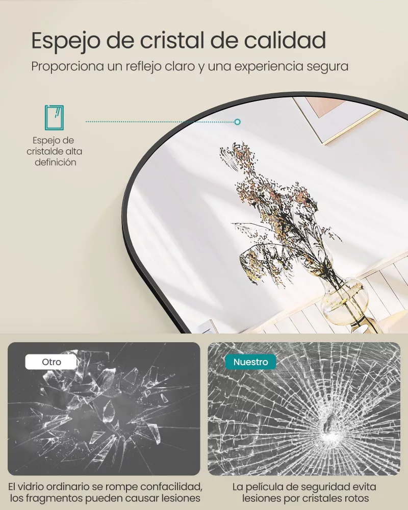 Pieza Decorativa: Más que un espejo, es un elemento decorativo que realza el estilo de tu dormitorio, entrada, sala de estar o gimnasio en casa.