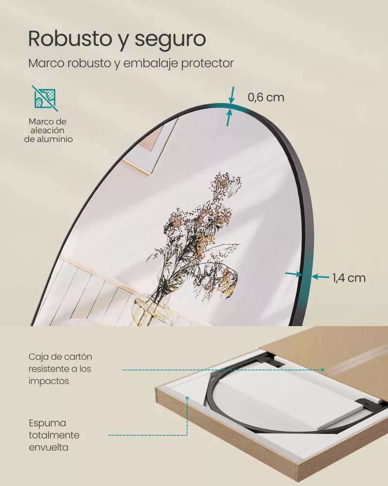 Colocación Versátil: Úsalo como espejo de pie o montado en la pared según prefieras.