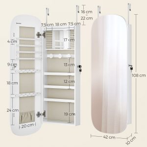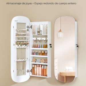 Este armario joyero con espejo es un complemento elegante y funcional para cualquier habitación. Combina estética y practicidad, ofreciendo un amplio almacenamiento para joyas y accesorios mientras presenta un diseño moderno y decorativo.