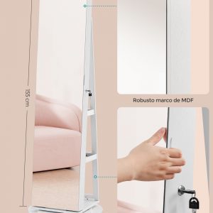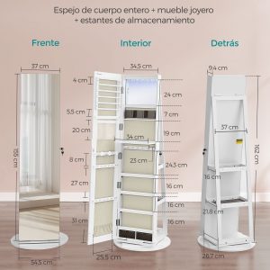 Transforma tu rutina diaria con nuestro espejo joyero de cuerpo entero sin marco, diseñado no solo para brindarte una visión completa de tu atuendo sino también para organizar meticulosamente todas tus joyas y accesorios. Este mueble combina una estética moderna con funcionalidades avanzadas, haciendo de cada preparación una experiencia placentera.