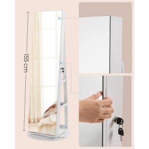 Iluminación LED Interior: Equipado con 6 luces LED, este organizador ilumina tus joyas al abrir la puerta, facilitando la elección de accesorios incluso en la oscuridad, sin necesidad de encender las luces principales y perturbar la paz de tu ser querido.