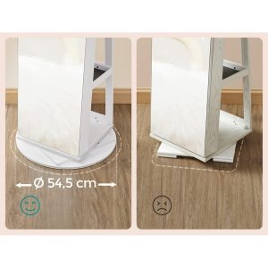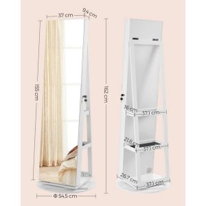 Transforma tu rutina diaria con nuestro espejo joyero de cuerpo entero sin marco, diseñado no solo para brindarte una visión completa de tu atuendo sino también para organizar meticulosamente todas tus joyas y accesorios. Este mueble combina una estética moderna con funcionalidades avanzadas, haciendo de cada preparación una experiencia placentera.