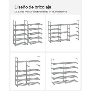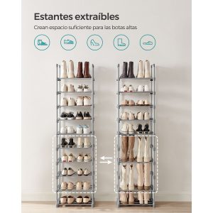 Apila los 10 estantes para aprovechar al máximo la altura, divídelos en unos pocos estantes juntos o por separado, o quita un estante para dar cabida a botas altas. La elección es tuya, y este zapatero versátil se adapta a tus necesidades cambiantes.