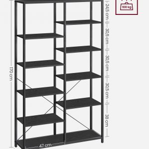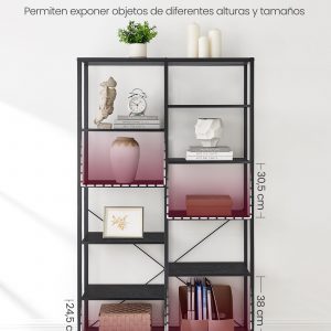 Amplio Espacio de Almacenamiento: Con dimensiones de 30 x 100 x 170 cm, esta librería proporciona 10 compartimentos abiertos, ofreciendo un espacio generoso para almacenar y exhibir una variedad de artículos, lo que la hace perfecta para mantener el orden y la organización en tu hogar.