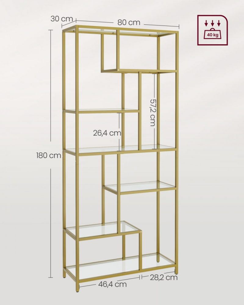 Fabricada con vidrio templado y acero, esta estantería no solo representa durabilidad, sino también robustez. Puede soportar una carga total de hasta 40 kg, asegurando una larga vida útil y acompañándote en los buenos momentos.