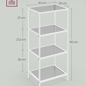 Maximización del Espacio Vertical: Con dimensiones de 30 x 40 cm y una altura de 95 cm, ofrece 4 niveles de almacenamiento sin ocupar mucho espacio en el suelo.