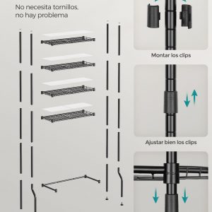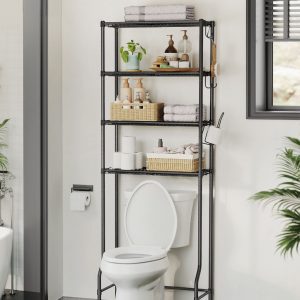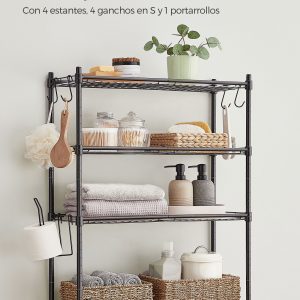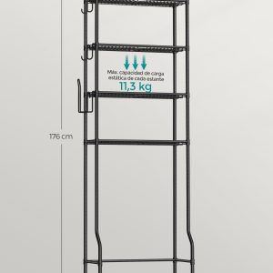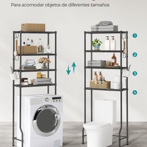Estantería baño sobre inodoro, 4 estantes ajustables, metal, negro