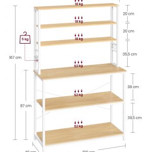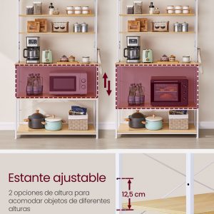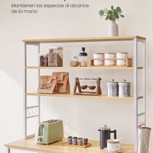 Esta estantería de cocina no solo es una solución de almacenamiento eficiente y elegante, sino también una adición duradera y segura para tu hogar. Con su amplia capacidad de almacenamiento y diseño versátil, es ideal para mantener tu cocina organizada y aprovechar al máximo el espacio disponible.