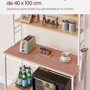 Construcción Sólida y Duradera: Combina un marco de acero robusto con tablero de aglomerado duradero para una estantería resistente y capaz de sostener tus electrodomésticos de cocina más pesados.