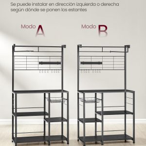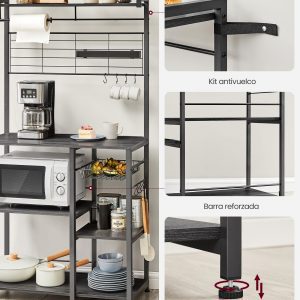 Estantería de cocina alta con espacio para microondas, greige y negro