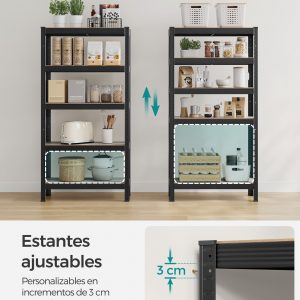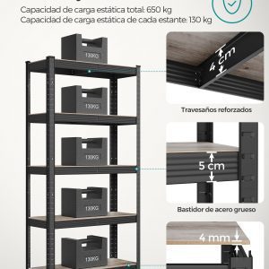 Estantería industrial de 4 niveles, montaje sencillo, marrón
