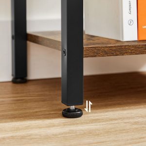 La estabilidad es clave en cualquier mueble, y esta librería lo tiene todo. Equipada con patas ajustables, se mantiene firme y recta incluso en superficies irregulares, mientras que su diseño en forma de X refuerza su capacidad para sostener hasta 50 kg. Es la combinación perfecta de belleza y fuerza, ofreciendo un soporte fiable para tu biblioteca personal.