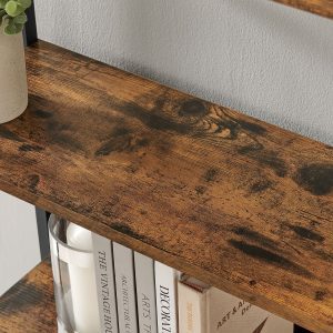 Estilo que Destaca: Su estructura de acero negro mate y los estantes de madera marrón rústico, junto con un diseño en la parte posterior, aportan un toque distintivo y moderno a cualquier espacio.