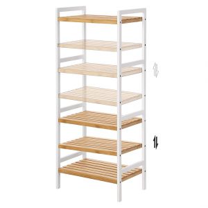 Fabricada en bambú de alta calidad, esta estantería no solo promete una excelente capacidad de carga (hasta 15 kg por estante), sino que también asegura durabilidad y resistencia, ideal para uso diario.