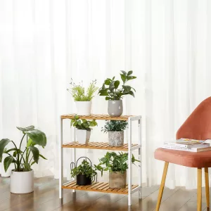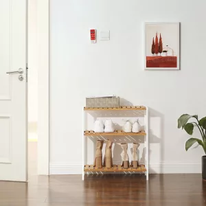 Banco zapatero bambú, 3 estantes, 70x28x45 cm, madera