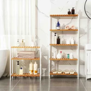 La superficie lacada y pulida de nuestra estantería no solo es resistente a la humedad y fácil de limpiar, sino que también está diseñada para evitar arañazos y rayones, gracias a los tornillos avellanados y bordes suavizados. Con baldas de alturas variadas, ofrece versatilidad para almacenar objetos de diferentes tamaños, desde zapatos y libros hasta macetas y artículos de ducha.