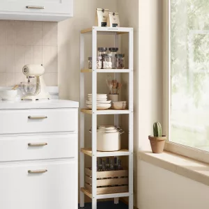 Armario de baño alto blanco con 3 estantes, 1 cajón y 1 armario