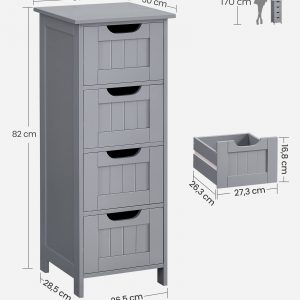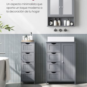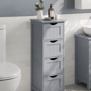 Estantería de baño de pie con 4 cajones, estilo moderno, gris místico