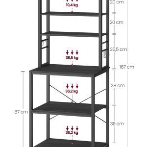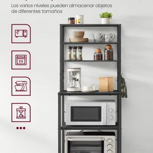 Transforma tu cocina en un espacio de almacenamiento y trabajo altamente eficiente con nuestra estantería de cocina de seis niveles. Diseñada pensando en la funcionalidad y el estilo, esta solución todo en uno es perfecta para organizar desde botellas y electrodomésticos hasta utensilios de cocina, todo mientras añade un toque de elegancia a tu espacio.