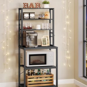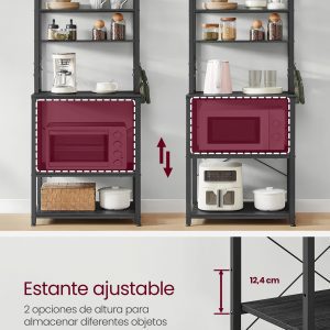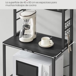 Calidad Superior: La combinación de un marco de acero robusto y tableros de aglomerado duraderos garantiza que esta estantería sea sólida y estable, capaz de soportar tu microondas, cafetera y otros accesorios de cocina con facilidad.