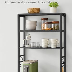 Aprovechamiento Máximo del Espacio: Con sus dimensiones compactas de 40 x 60 x 167 cm, esta estantería de 6 niveles es ideal para cocinas pequeñas o como una estación de café miniatura, permitiéndote sacar el máximo provecho de cada centímetro de tu cocina.