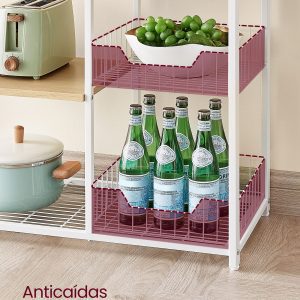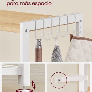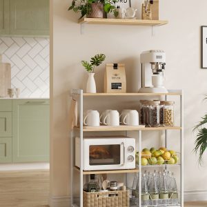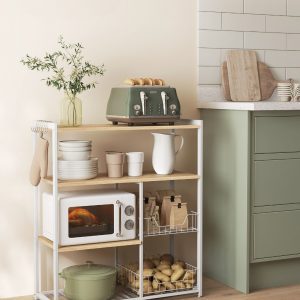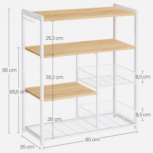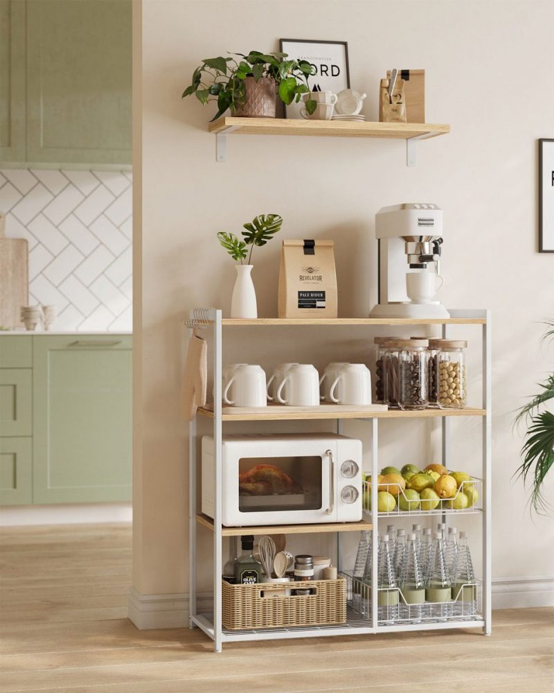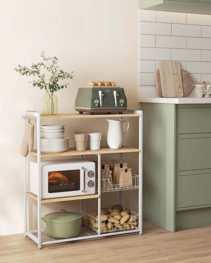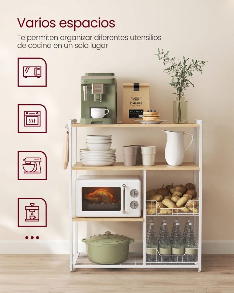 Estantería de cocina, cestas de malla, soporte microondas, nogal medio
