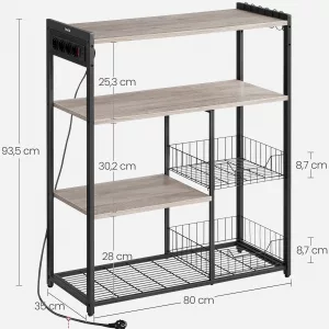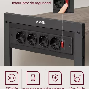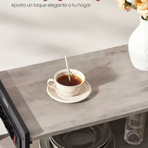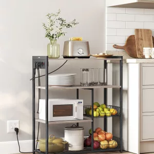 Estación de Carga Extraíble: Diseñada pensando en la conveniencia, esta estantería incluye una estación de carga con 4 tomas de corriente que se puede montar en el lado izquierdo o derecho, según tus necesidades. Ideal para tener a mano pequeños electrodomésticos como licuadoras, tostadoras o cafeteras, mientras mantienes los cables organizados y fuera del camino.