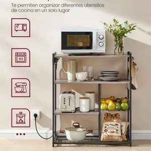 Simplifica tus preparaciones culinarias y organiza todos tus utensilios y electrodomésticos de cocina con esta Estantería de Cocina Multifuncional de Varios Niveles. Su diseño inteligente y su robusta estructura brindan una solución eficiente y duradera para mantener todo al alcance de tu mano, mientras añades un toque de estilo rústico y moderno a tu cocina.